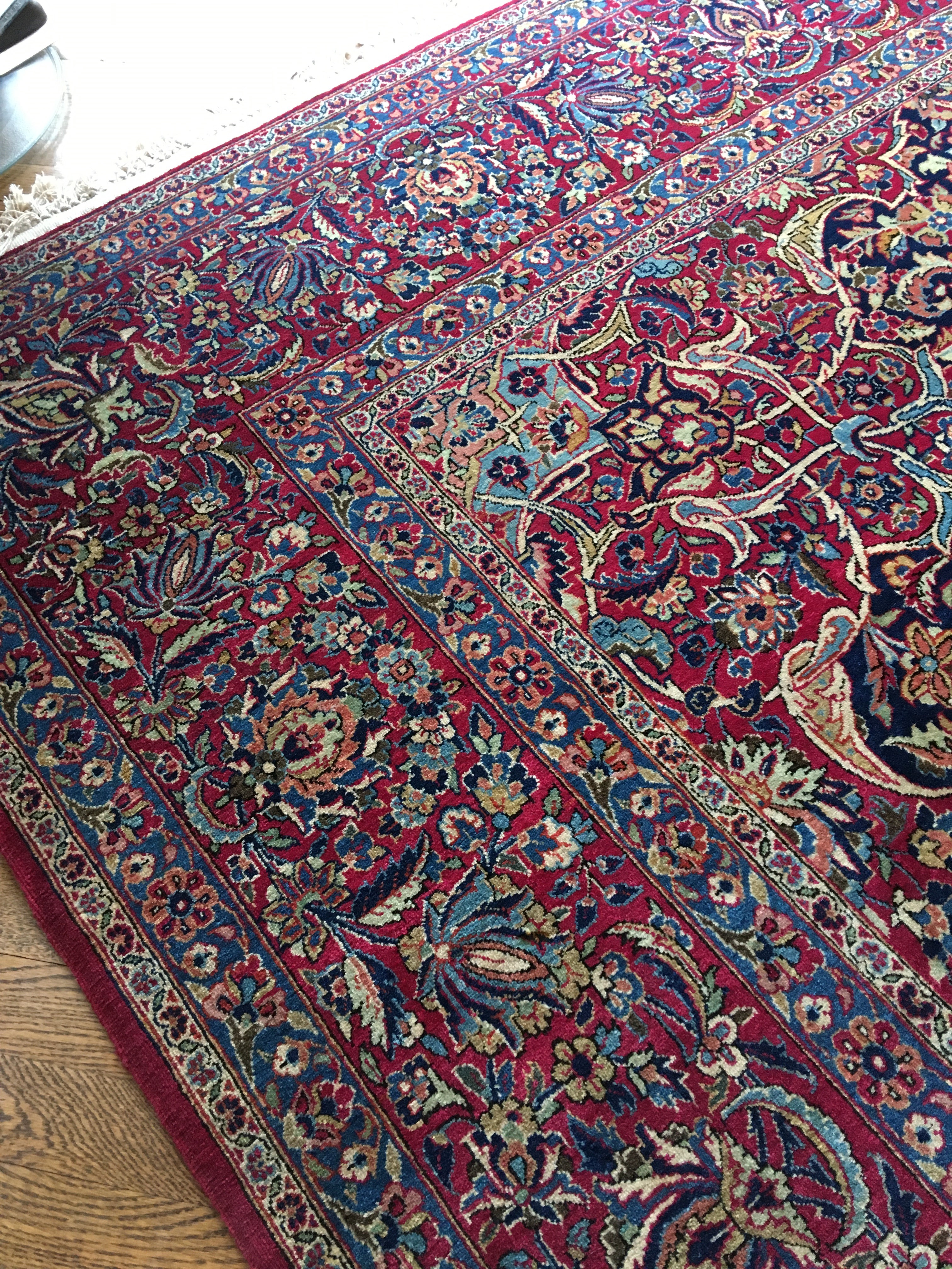 Grandma K’s Persian Rug: Worth thousands of dollars, and also priceless to me. Grandma was an Armenian immigrant in the early 1900’s. Her family had been wealthy in the old country but once here she and Grandpa were poverty-stricken. Yet, by 1930 she had acquired this Keshan rug for her dining room. She knew rugs! It dates to about 1920, but the pile still looks new. I remember playing under her table as a child, on that very rug. It’s now under my own dining room table. Antique rugs don’t live forever, I understand, but this is a keeper and deserving of TLC for as long as I live. I wonder if any of my grandchildren (who have played under my table) will have it in their dining rooms. They should tell their children that their own great-great grandma bought that rug back in the 1920’s, and she knew rugs!